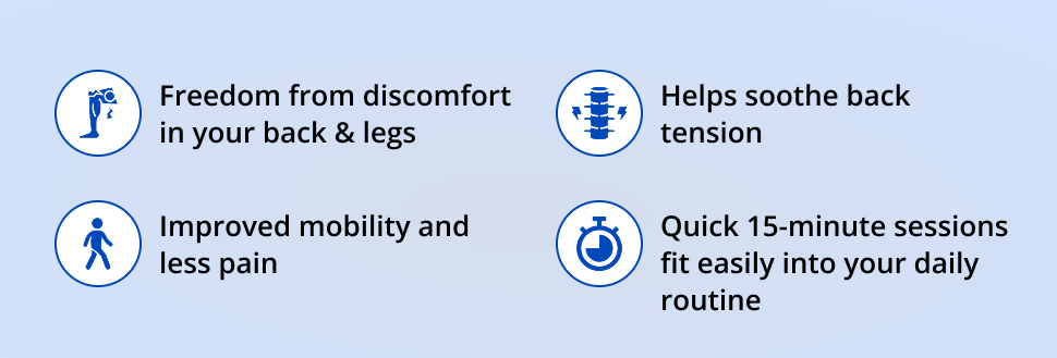 Do it in bed. On your couch. Even on your office floor. Wherever you hurt, relief is 15 minutes away.